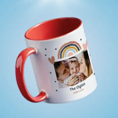 These are food-grade ceramic mugs with your chosen photo, name, message or artwork printed directly into the surface using dye-sublimation heat transfer. The ink bonds with the glaze rather than sitting on top, making the print dishwasher-safe and resistant to fading. Available in standard 11oz size, they suit birthdays, anniversaries, housewarmings and employee appreciation gifts.